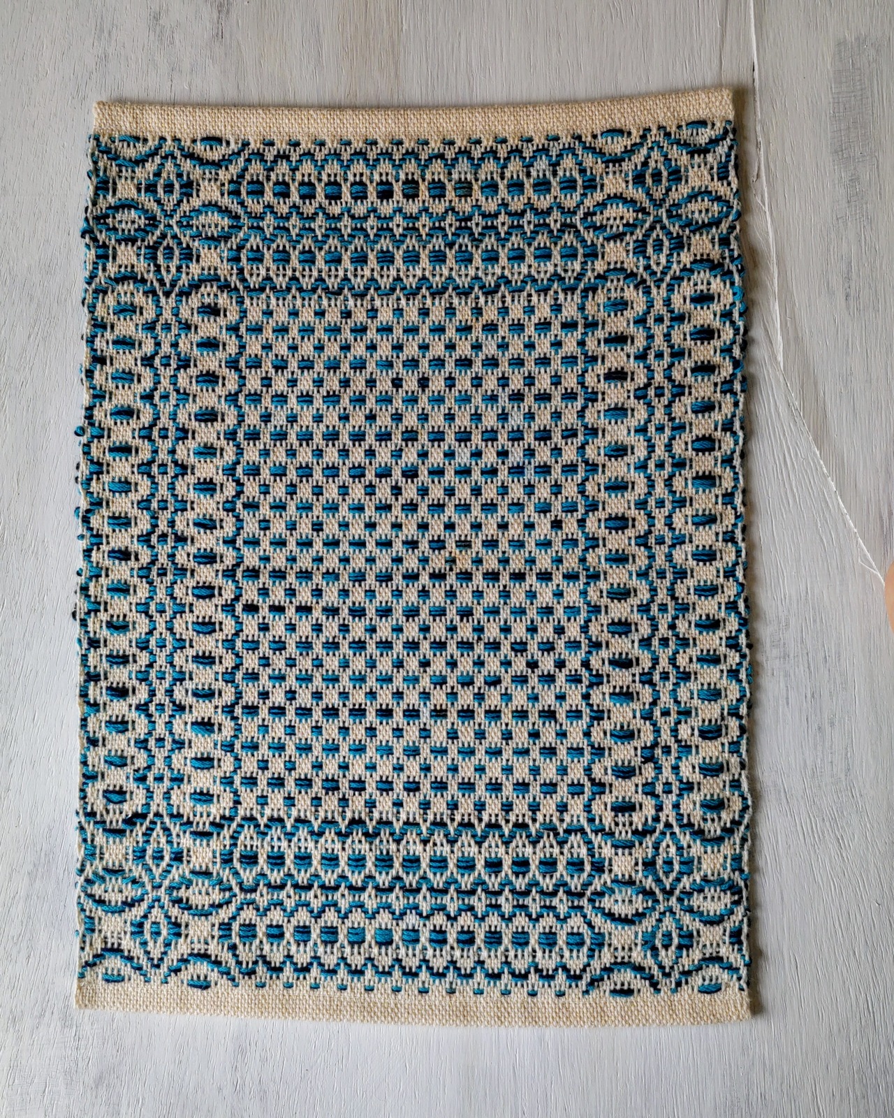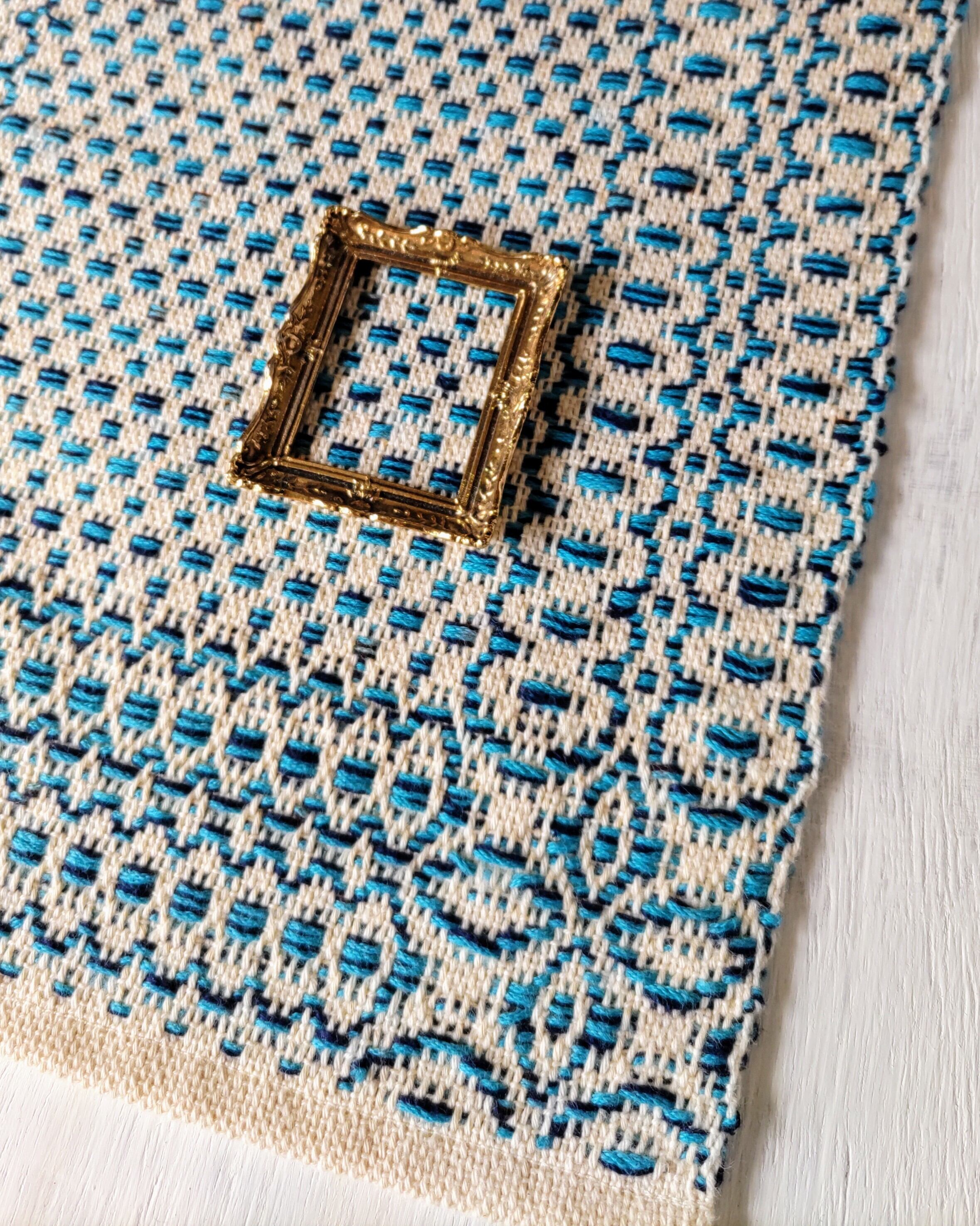 オーバーショットと呼ばれる海外の伝統的な技法で織り上げた、絵画のようなティーマット。